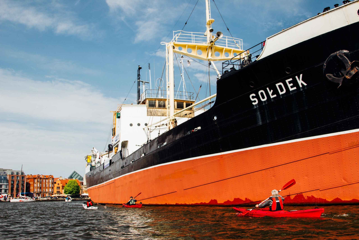 Nimm an einer geführten Kajaktour teil und erlebe ein ganz anderes Danzig als das, das du an Land gesehen hast.