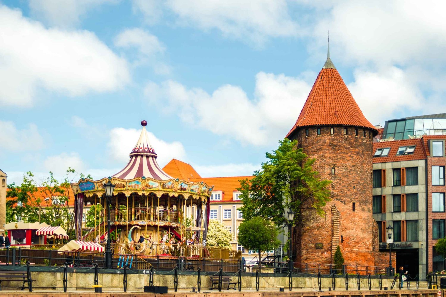 See the remains of the wall of Teutonic Castle, the Long Seacoast (Dlugie Pobrzeze) with water gates leading to the city, the famous 15th-century crane, Ołowianka Island, and Granary Island.