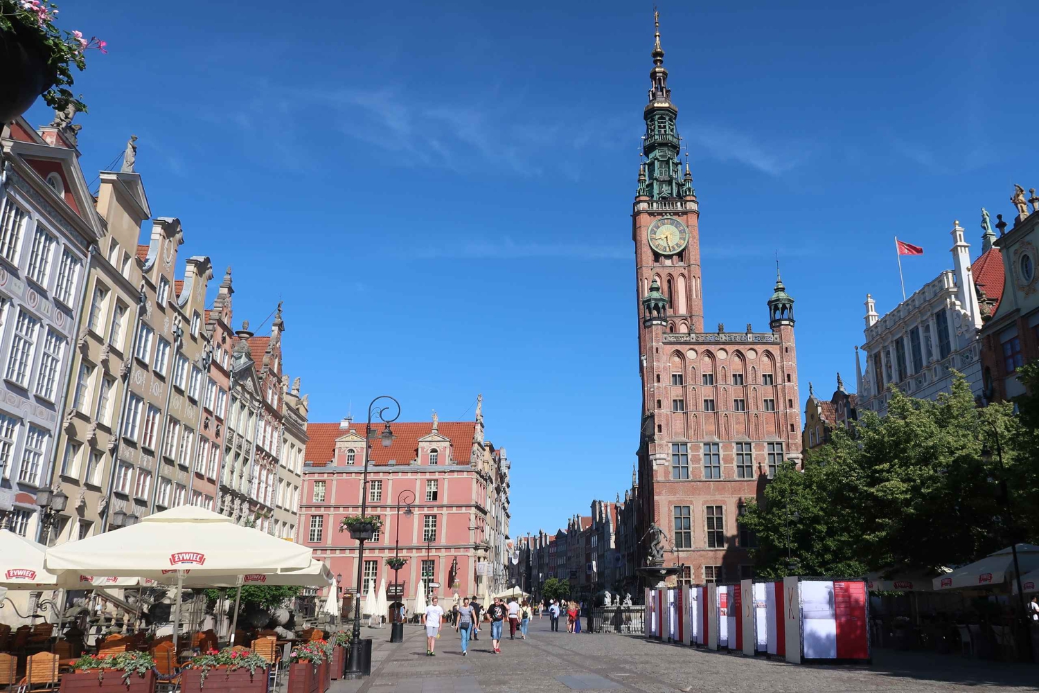 De lá, segue para a Cidade Velha de Gdansk e vê o Guindaste Medieval, o Portão Verde, a Praça do Mercado Longo com a Fonte de Neptuno, a Câmara Municipal e a Sala Vermelha. Também terás a oportunidade de visitar a Porta Dourada, a Torre da Prisão, o Museu do Âmbar, o Arsenal, a Igreja de Santa Maria ou a encantadora Mariacka Lane com os seus terraços e lojas de jóias de âmbar.